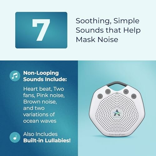 - Offers 7 non-looping soothing sounds to create a calming atmosphere.